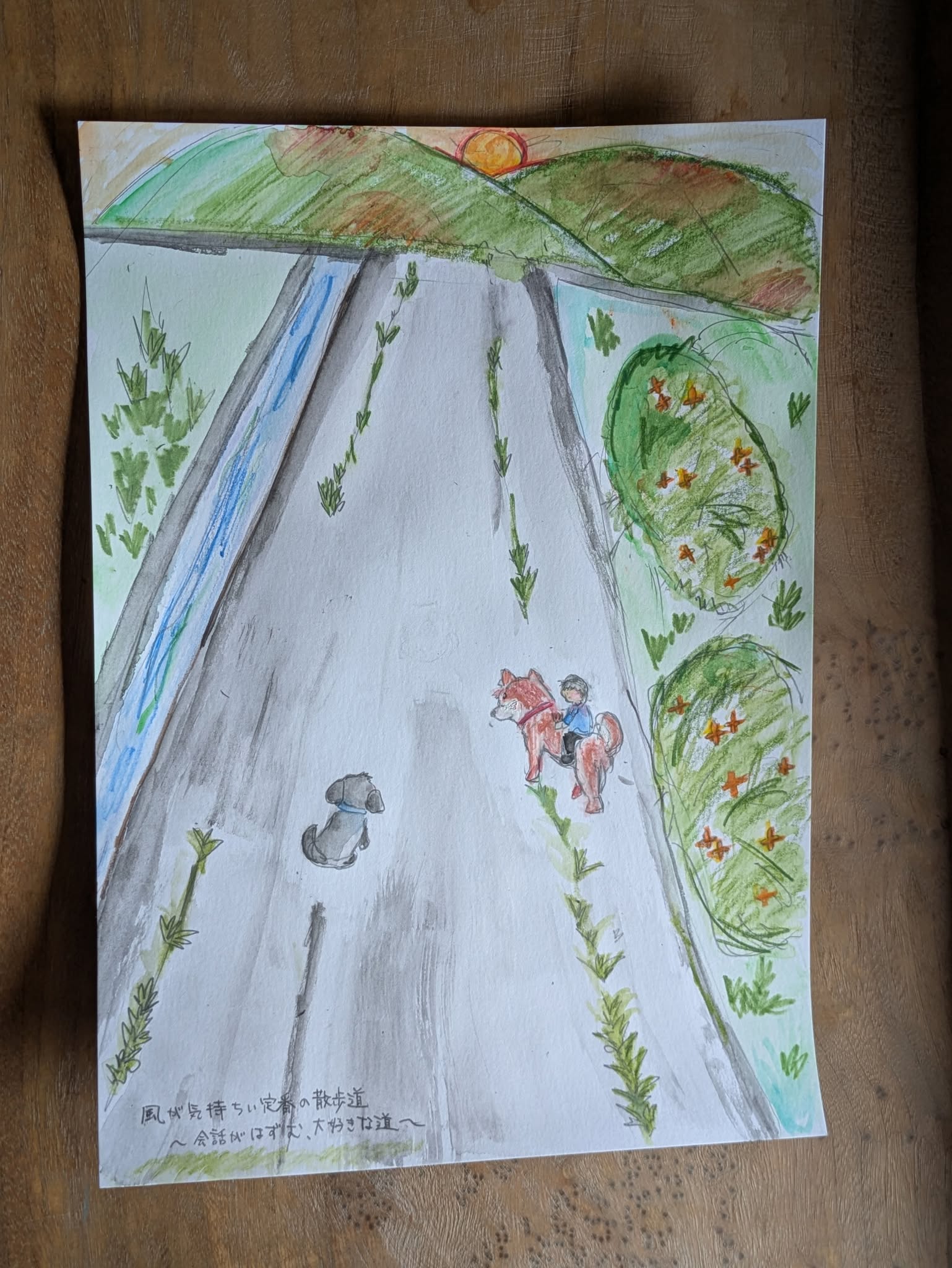 「定番の散歩道」という言葉に、日常の中にある大切な景色がにじんでいます。